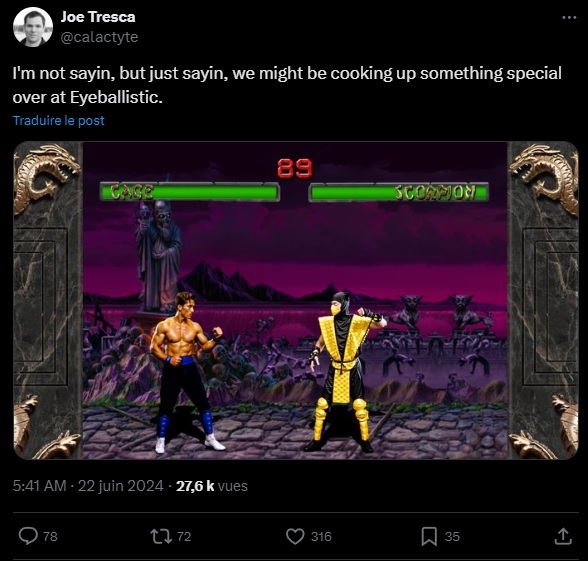 La dynamique des Mortal Kombat pourrait bientôt connaître un nouveau bouleversement. Après la réussite de Mortal Kombat 11 et le retour aux origines avec MK1, la franchise pourrait bien retourner à ses racines avec plus de force encore. C’est en tout cas ce qu’a teasé Joe Tresca, PDG de Eyeballistic Games, sur le réEyeballisticseau social X.com :