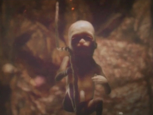 Plan en gros plan du fœtus : Le cadrage centré autour du fœtus, souvent en gros plan, crée une connexion immédiate et intime avec ce qui pourrait être perçu comme l’essence même de la vie. Cette focalisation exclut tout décor ou environnement extérieur, créant un sentiment d’isolement.