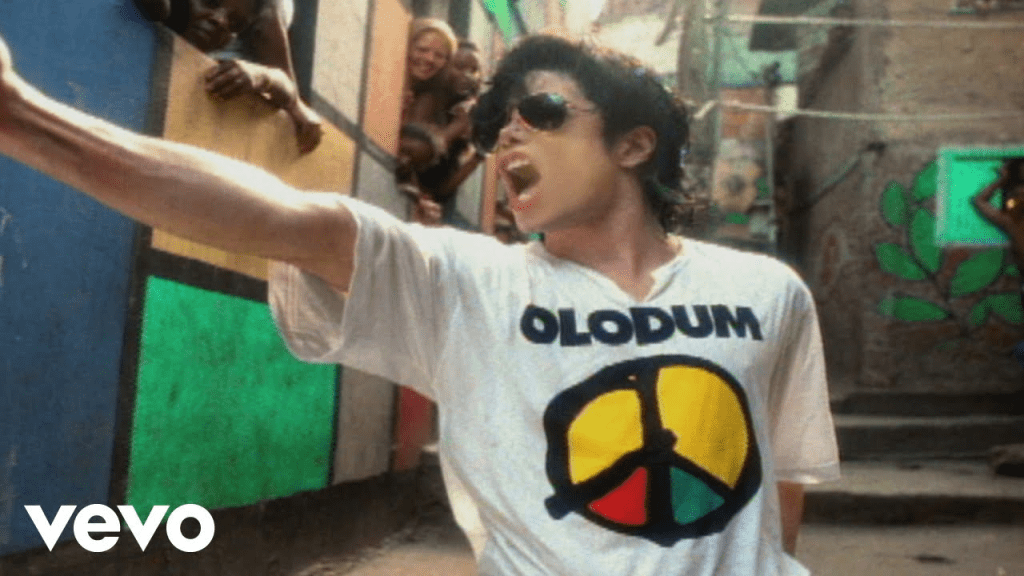 - Version « Brésil » : Changement de décor total pour l’autre clip, tourné quelques semaines plus tard au Brésil, dans les rues colorées du quartier de Pelourinho à Salvador de Bahia et au cœur de la favela Santa Marta à Rio de Janeiro. Michael Jackson, habillé plus simplement (tee-shirt et pantalon noirs, arborant le mot Olodum), se mêle à la population locale pour chanter et danser au son des percussions afro-brésiliennes. Il s’est adjoint les talents du groupe culturel Olodum, célèbre formation de percussionnistes de Salvador, dont les tambours samba-reggae rythment toute la chanson. L’ambiance du clip est électrique : Michael danse au milieu des enfants et des habitants de la favela, sous les fresques murales et le linge qui pend aux balcons. Le contraste entre l’énergie festive de la musique et la réalité des ruelles délabrées est saisissant, et sert le propos : malgré la joie et la fierté culturelle affichées, la pauvreté et l’abandon par les autorités sont palpables – « ils se fichent de nous », semble crier chaque plan de ce court-métrage. Le tournage de cette vidéo au Brésil n’a pas été de tout repos. Les autorités locales, soucieuses de leur image, ont tenté d’interdire à Michael Jackson de filmer dans les favelas de Salvador et Rio. Elles redoutaient que montrer la pauvreté et les problèmes sociaux à l’écran ne ternisse la réputation du pays, notamment en vue des candidatures à des évènements internationaux comme les Jeux olympiques. On a même accusé Michael d’« exploiter la misère » ! Mais le Roi de la Pop ne s’est pas laissé intimider : après d’intenses négociations (allant jusqu’à discuter avec les chefs locaux… y compris des trafiquants qui contrôlaient la favela !), un juge brésilien finit par autoriser le tournage en urgence. Plus de 1 500 policiers et 50 habitants volontaires ont été mobilisés pour sécuriser le quartier pendant les prises de vue – Michael Jackson en tournage à Rio, c’était un peu comme un chef d’État en visite officielle ! Fort heureusement, l’enthousiasme des habitants de Santa Marta a été plus fort que les craintes des politiciens. Durant le tournage, les résidents sont descendus en masse dans la rue pour voir la star et participer au clip. L’ambiance était à la fête et à l’émotion : à un moment, une fan parvient à étreindre Michael en pleine danse, bientôt imitée par une deuxième : Michael chute sous le poids des accolades, avant de se relever en riant et de continuer à chanter comme un pro – une scène d’improvisation réelle qu’on peut voir dans le clip final. Cette séquence inattendue apporte une touche de chaleur humaine au vidéo-clip, témoignant de l’amour du public et de la spontanéité de l’événement. Au final, ce clip brésilien offre une vitrine mondiale aux problèmes sociaux du pays, mais aussi à sa richesse culturelle. Les images de Michael Jackson chantant au milieu des percussionnistes noirs d’Olodum ont fait le tour du monde, mettant en lumière le patrimoine afro-brésilien. D’ailleurs, suite à ce clip, le groupe Olodum a gagné une notoriété internationale inattendue, apparaissant dans les médias de plus de 140 pays. Une belle revanche quand on sait que certains responsables locaux voulaient empêcher cette collaboration ! Michael conclut la vidéo par un message sans équivoque à l’écran (en portugais dans la version locale) : « Michael, eles não ligam pra gente » – littéralement « Michael, ils ne se soucient pas de nous ». Une façon de passer le micro aux habitants, et de rappeler que derrière la star planétaire se cache un citoyen du monde solidaire des opprimés, où qu’ils soient.