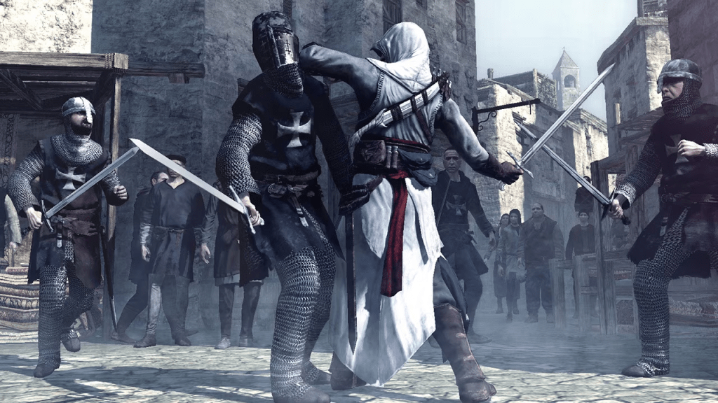 Ah, Assassin’s Creed, ce jeu où tu peux escalader une cathédrale en sandales, plonger dans du foin sans te casser une vertèbre, et éliminer tes ennemis en pleine foule sans que personne ne trouve ça suspect. Sorti en 2007, ce premier opus t’invitait à incarner Altaïr, un assassin si discret qu’il portait une cape blanche immaculée au beau milieu d’un marché médiéval poussiéreux. Parce que rien ne dit « passe-partout » comme une capuche de moine ninja en plein désert. Entre complots, parkour et pigeons traumatisés, Assassin’s Creed a marqué le début d’une saga où l’Histoire n’a jamais été aussi fun… ni aussi mortelle.