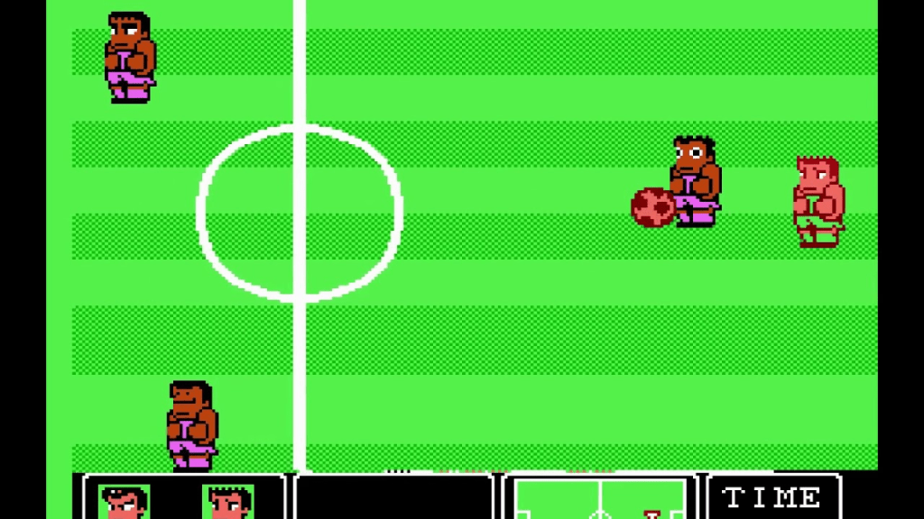 Du pixel art en 2D aux premières 3D (années 1970-1990) – Visuellement, l’évolution a été tout aussi impressionnante. Les jeux de sport des années 1970 tenaient sur des écrans rudimentaires : Pong, par exemple, affichait deux barres blanches et un carré pour balle sur fond noir. Dans les années 1980, l’ère du pixel art démarre véritablement avec les consoles 8-bit et 16-bit et les ordinateurs personnels : les athlètes virtuels sont représentés par des sprites 2D colorés, encore très simplifiés mais déjà plus reconnaissables. Chaque sport a son style de représentation graphique : vue de dessus pour certains jeux de football (NASL Soccer en 1980 ou Kick Off en 1989), vue latérale pour les jeux de basketball ou de tennis (Double Dribble en 1986 montre des basketteurs en sprites assez détaillés pour l’époque), ou encore vue derrière le joueur pour des titres de course automobile. À mesure que la puissance graphique augmente, les animations gagnent en fluidité et les détails visuels se précisent. Sur 16-bit (Super Nintendo, Mega Drive au début des années 1990), on voit apparaître des effets rudimentaires de perspective : par exemple le Mode 7 de Nintendo permet des terrains qui pivotent et zooment (utile pour des jeux de course ou de football, donnant une illusion de 3D). Néanmoins, jusqu’au début des années 90, on reste sur de la pure 2D : les personnages sont dessinés image par image, les proportions sont caricaturales (ex. les joueurs du jeu Nintendo World Cup en 1990 avec de grosses têtes), et les publics dans les stades ne sont que des taches de couleur statiques en arrière-plan. Chaque amélioration technique apporte cependant plus de réalisme visuel : les palettes de couleurs s’agrandissent, la résolution augmente légèrement, permettant des maillots de sport aux bonnes couleurs, l’affichage du score à l’écran, ou des décors un peu plus élaborés autour du terrain (tribunes, filets, etc.).