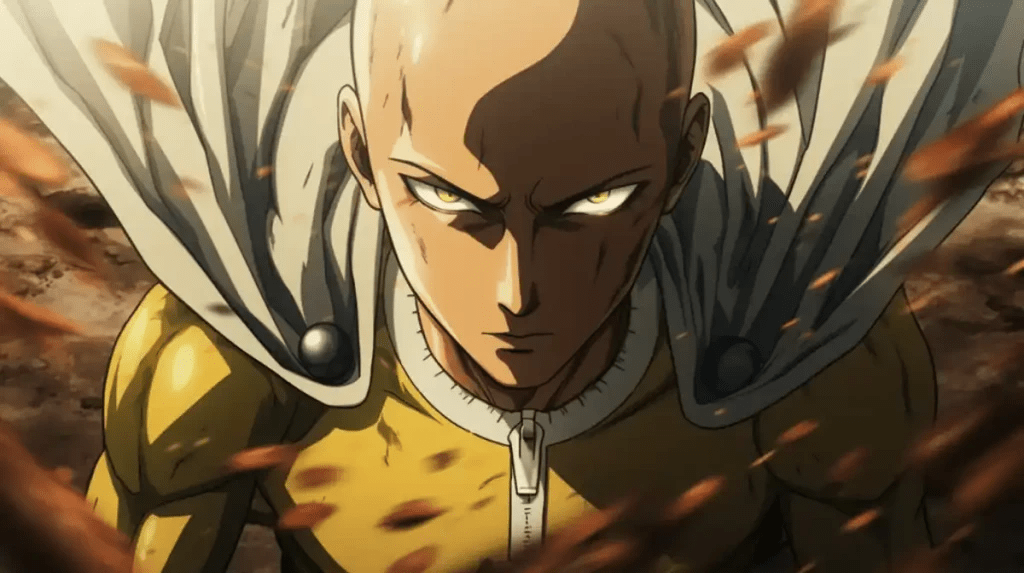 Saitama, c’est le gars qui s’est entraîné comme toi après trois cafés et une vidéo de motivation YouTube : 100 pompes, 100 squats, 100 abdos, et un petit footing. Sauf que lui, il l’a vraiment fait… tous les jours. Sans chauffage. Sans clim. Résultat : il a perdu ses cheveux, mais gagné la puissance d’un bug de jeu vidéo.