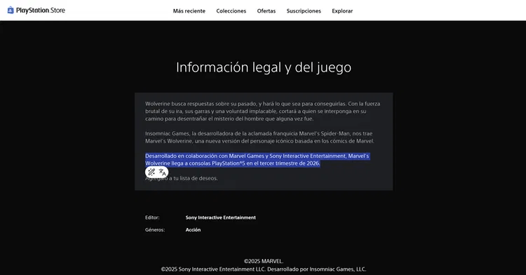 La mention de la date de sortie de Marvel’s Wolverine a été retirée du PlayStation Store, indiquant désormais qu’il arrivera sur PS5 à l’automne 2026. On se demande si cela était une erreur de PlayStation Mexique ou une fuite d’information, bien qu’une sortie en septembre paraisse plausible.